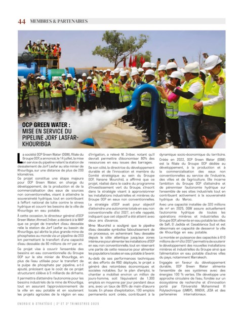 pour OCP Green Water, en charge du projet, réalisé dans le cadre du programme l’ambition du Groupe OCP d’atteindre et