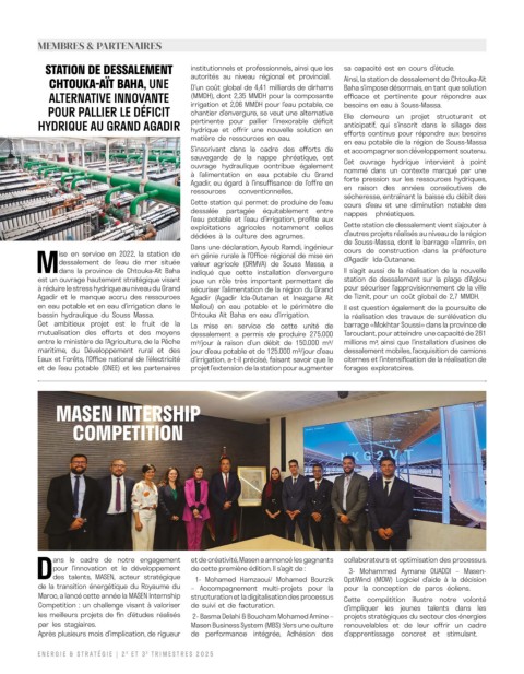 Maroc, a lancé cette année la MASEN Internship structuration et la digitalisation des processus Cette compétition illustre notre volonté