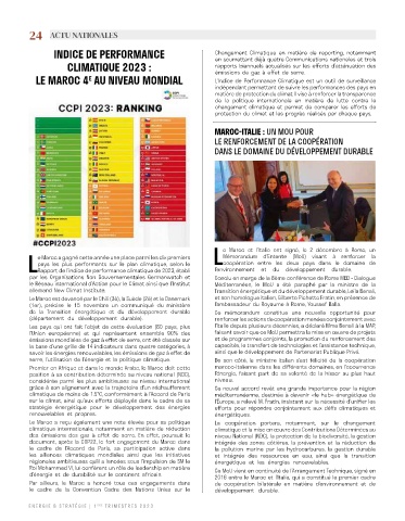 LE MAROC 4 AU NIVEAU MONDIAL L’Indice de Performance Climatique est un outil de surveillance favorisant l’accès au financement, le transfert de technologies