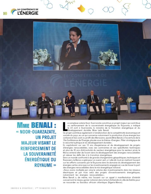 MMe BENALI : e complexe solaire Noor-Ouarzazate constitue un projet majeur qui contribue