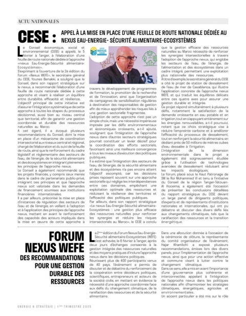 la mise en œuvre de cette approche à intersectoriels au Maroc», le CESE a conclu énergétique.