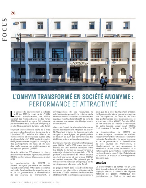 La transformation de l’ONHYM en développement durable, Leila Benali. STRATÉGIE