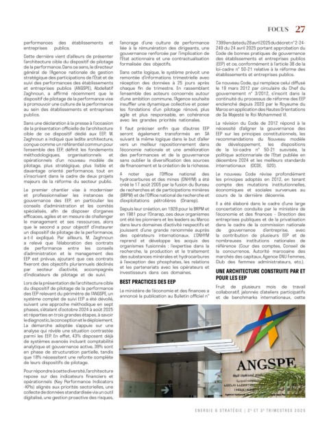 majeurs de la réforme du secteur public. hydrocarbures et des mines (ONHYM) a été les principes adoptés en 2012, en tenant