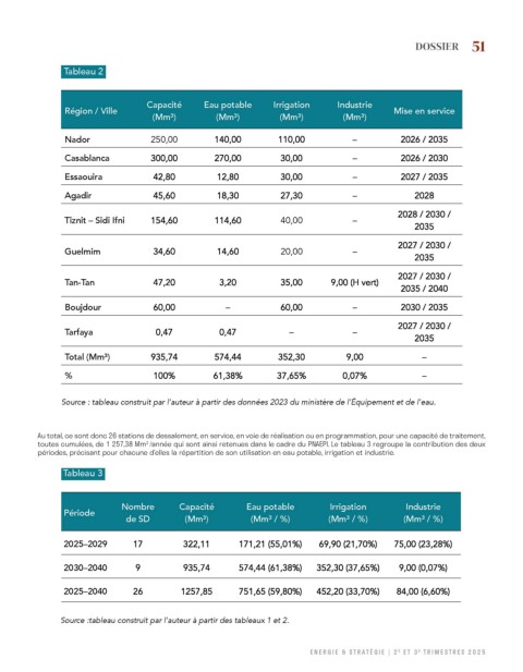 Au total, ce sont donc 26 stations de dessalement, en service, en voie de réalisation ou en programmation, pour une capacité de traitement,