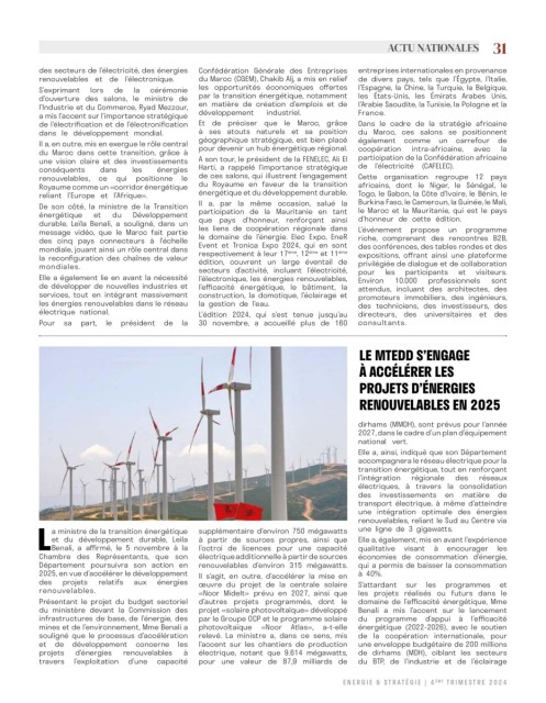 renouvelables. «Noor Midelt» prévu en 2027, ainsi que les projets réalisés ou futurs dans le