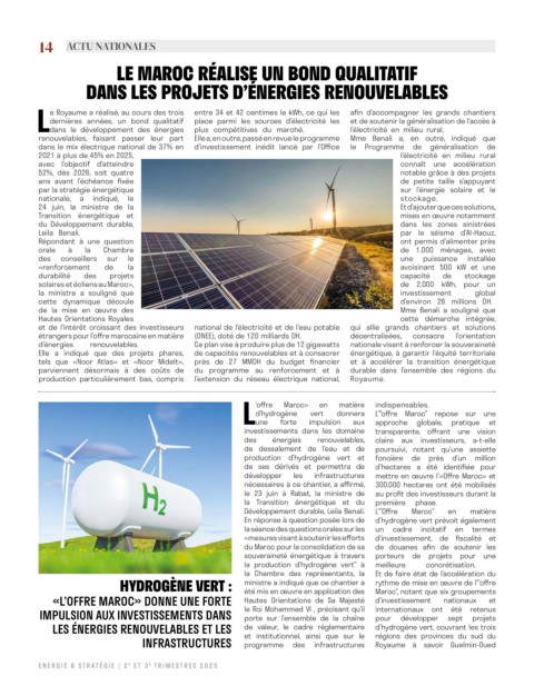 Elle a indiqué que des projets phares, de capacités renouvelables et à consacrer énergétique, à garantir l’équité territoriale